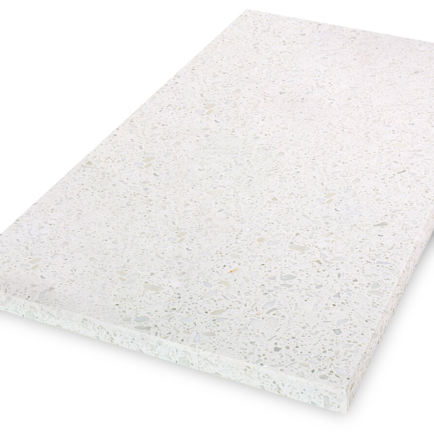 Blad marmercomposiet - Terrazzo wit - gepolijst - 2 cm dik - OP MAAT - Tablet (meubelblad / werkblad / bovenblad) - Marmer composiet - SHOPMONKEY TEST