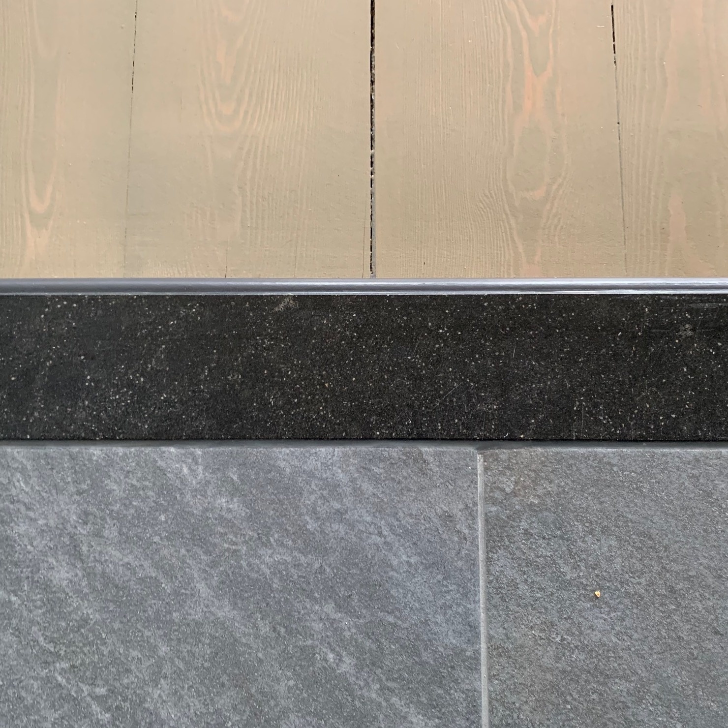 Dorpel binnendeur / binnendorpel - marmercomposiet - Donkergezoete arduin / blauwe steen look - Gepolijst - 2 cm dik - OP MAAT - 2-25 cm breed & 10-200 cm lang. Een prachtige donkere arduin look / optiek dorpel voor binnen - gepolijst afgewerkt - met een stijlvolle look, vervaardigd uit hoogwaardig marmercomposiet. De arduin imitatie marmercomposiet is een levendige & 'stoere' donkere antraciet kleurtint. Waarbij het 'echte' donkergezoete arduin wat grovere tekeningen kan bevatten, is deze arduin look wat rustiger, zachter en oogt deze ook wat 'egaler'. Een mooie donkere antraciet kleurtint met blauwsteen tekeningen: De prachtige uitstraling van arduin gecombineerd met de optimale prijs-kwaliteit verhouding (en overige voordelen) van marmer-composiet. De sfeervolle arduin look kleur combineert een toegankelijke basiskleur met subtiele tekeningen en past in praktisch iedere interieurstijl - van klassiek tot modern - en is een van onze populairste ‘composiet kleuren’.
