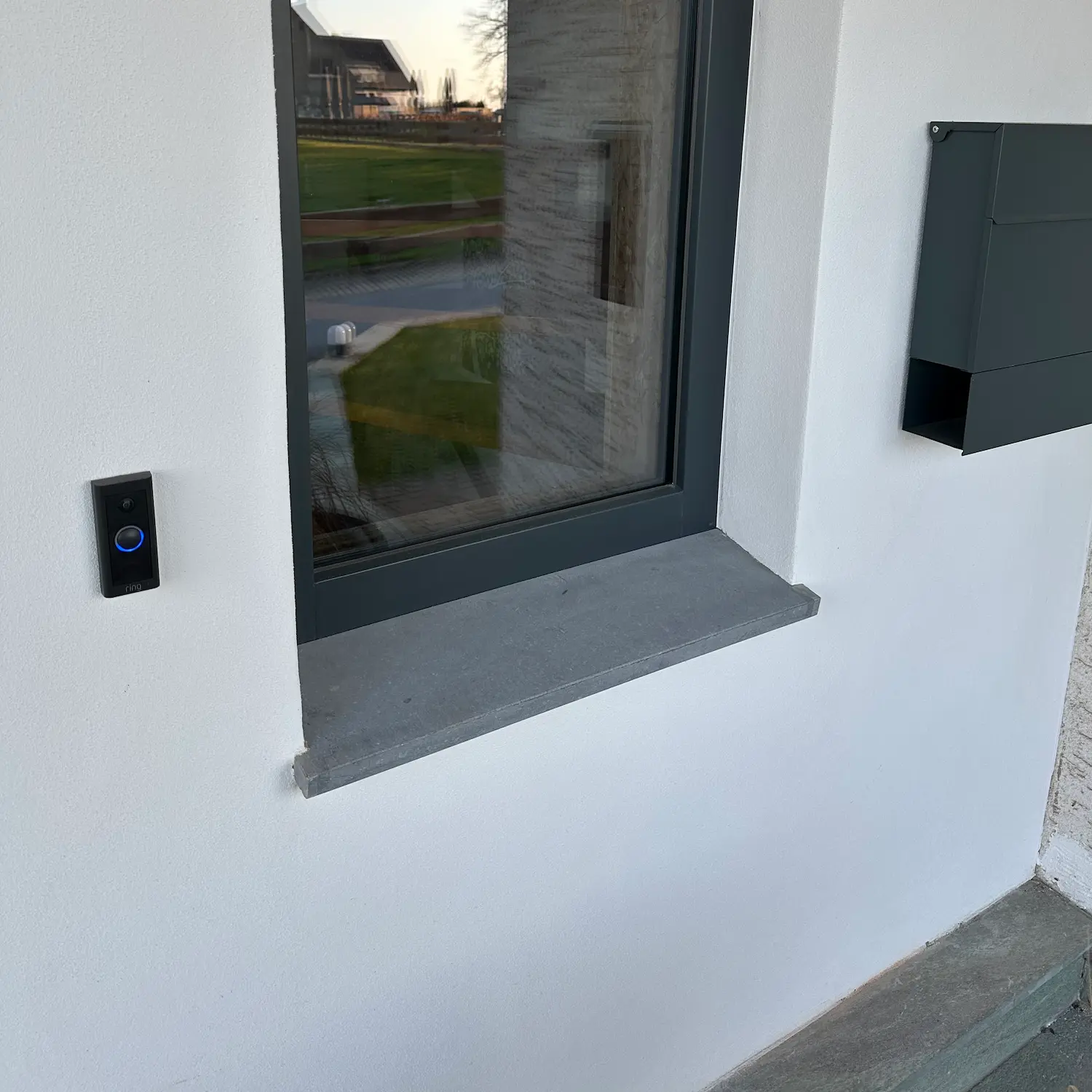 Een mooie vlakke blauwgrijze raamdorpel (optioneel met oplijmstrip) - oftewel raamtablet / venstertablet / vensterbank voor buiten - met een stijlvolle & stoere look vervaardigd uit topkwaliteit blauwe steen geschuurd (de echte Arduin uit Henegouwen!). Lees meer