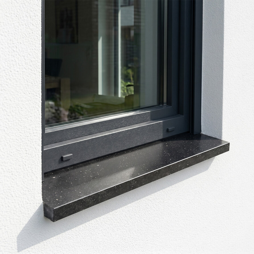 Raamdorpel vlak marmercomposiet - Arduin look (donker) - gepolijst - 3 cm dik - OP MAAT - Waterkering / dorpel raam met waterhol - raamtablet / vensterbank buiten