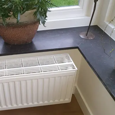 Een mooie donkere antraciet vensterbank voor binnen, met een stijlvolle & stoere look vervaardigd uit topkwaliteit donkergezoet arduin (de echte blauwe steen uit Henegouwen!). Lees meer