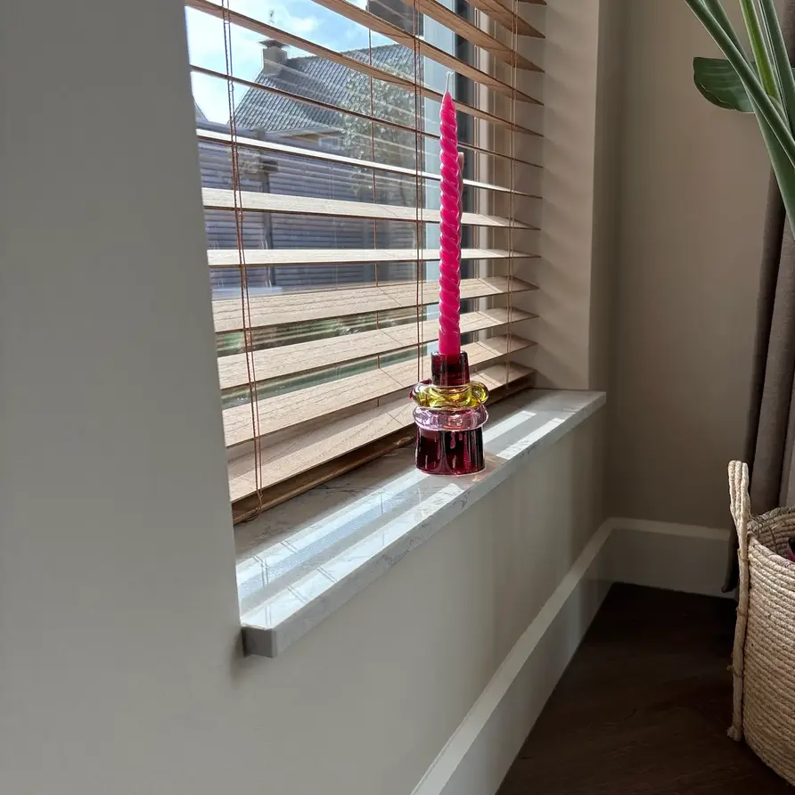 Deze composiet venstertablet wordt in eigen (natuursteen)zagerij - tot op de mm nauwkeurig - voor u op maat gezaagd & afgewerkt, door ervaren vakmannen, met zorg & liefde voor het vak. Standaard wordt uw vensterbank 'recht gezaagd' en worden de voorkant + beide zijkanten afgewerkt, dat wilt zeggen gepolijst + afgewerkt met een facetrandje. Deze mooie topkwaliteit kwarts-composiet vensterbank is ideaal geschikt voor een breed scala aan interieurstijlen.