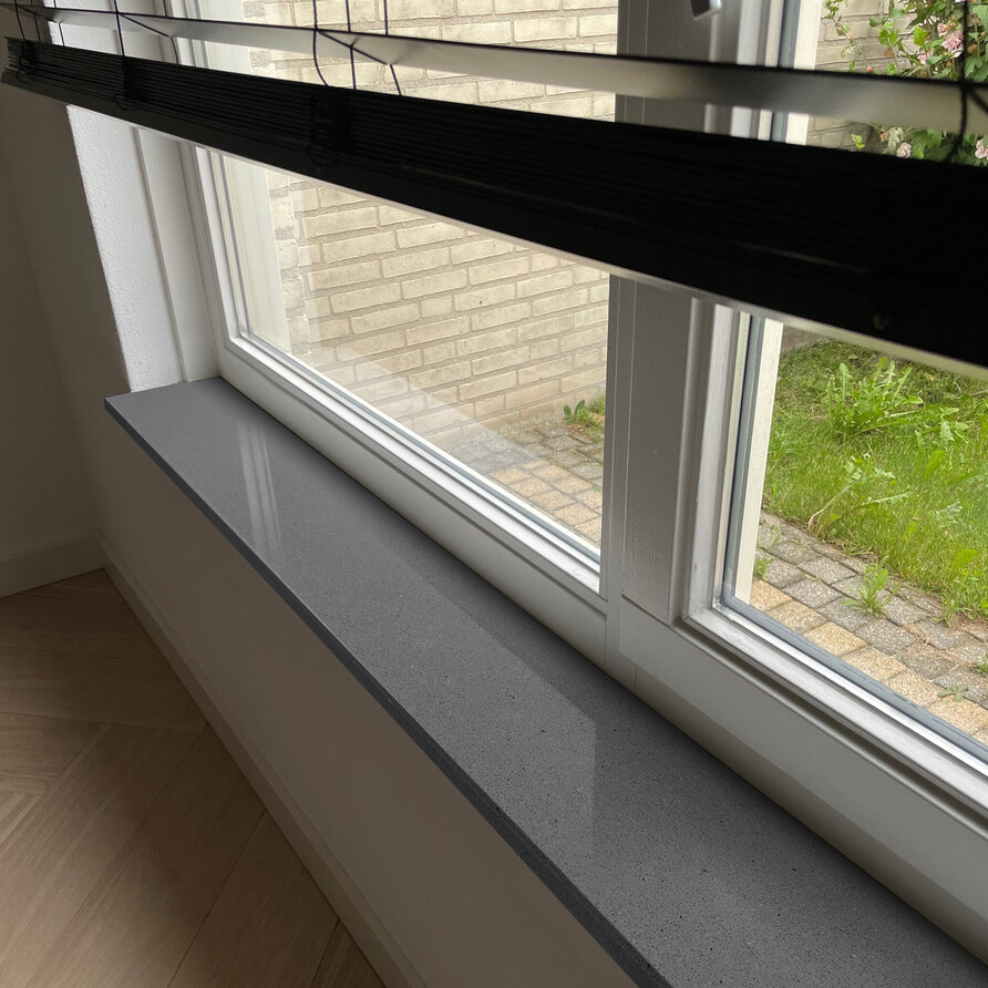 Een prachtige 'grijze' composiet vensterbank voor binnen, met een moderne look vervaardigd uit hoogwaardig marmercomposiet. Marmercomposiet grijs is een mooie (midden)grijstint met een licht 'werkje' in het oppervlak. Lees meer