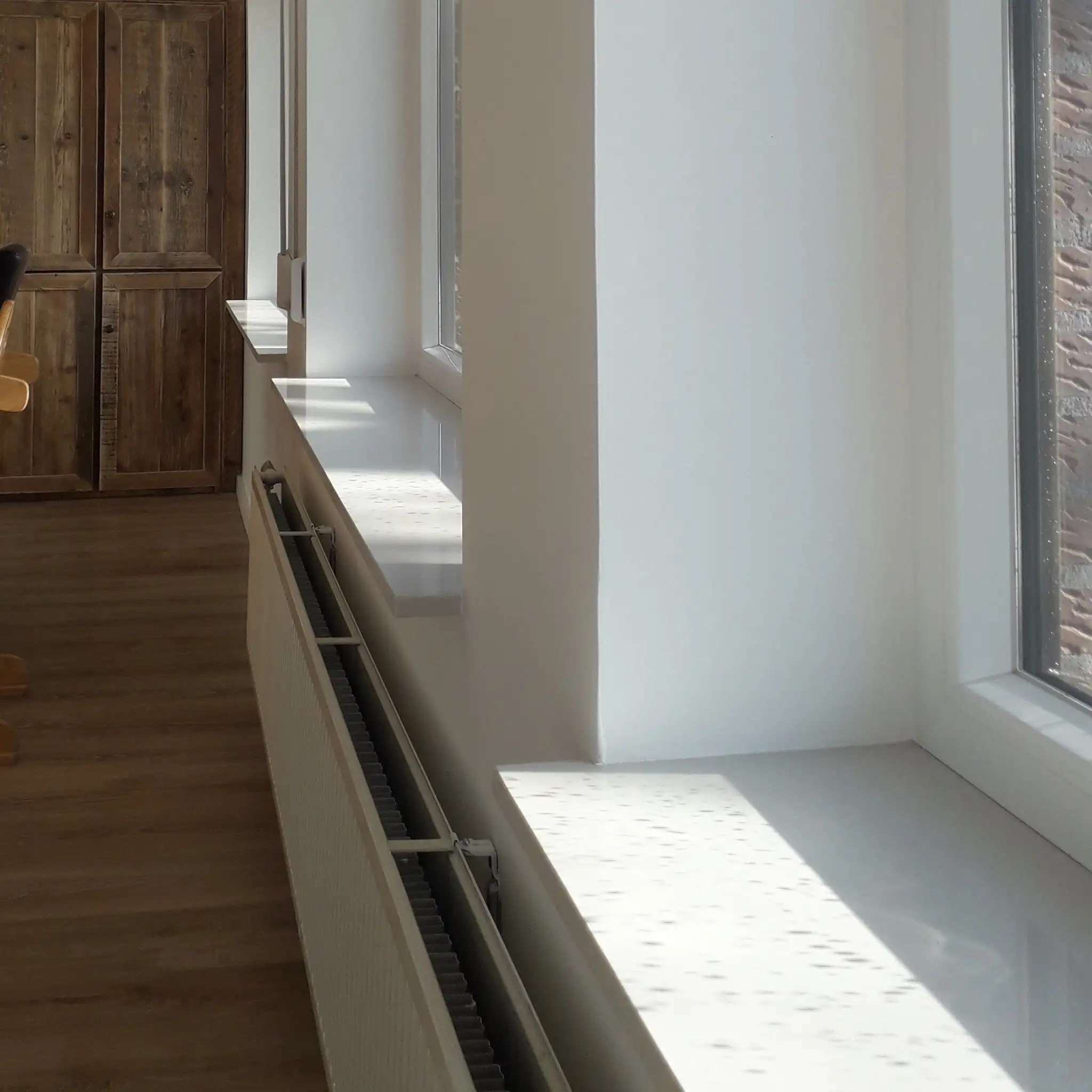 Een prachtige witte composiet vensterbank voor binnen, met een moderne & frisse look vervaardigd uit hoogwaardig marmercomposiet. De venstertablet marmercomposiet wit is de 'meest witte' vensterbank binnen onze collectie. Lees meer
